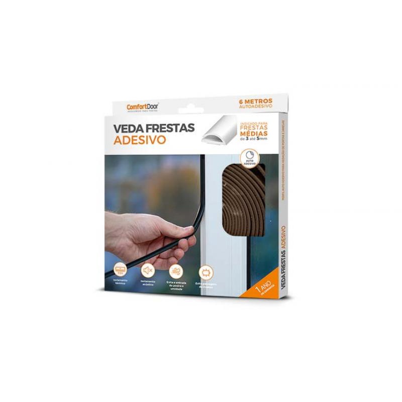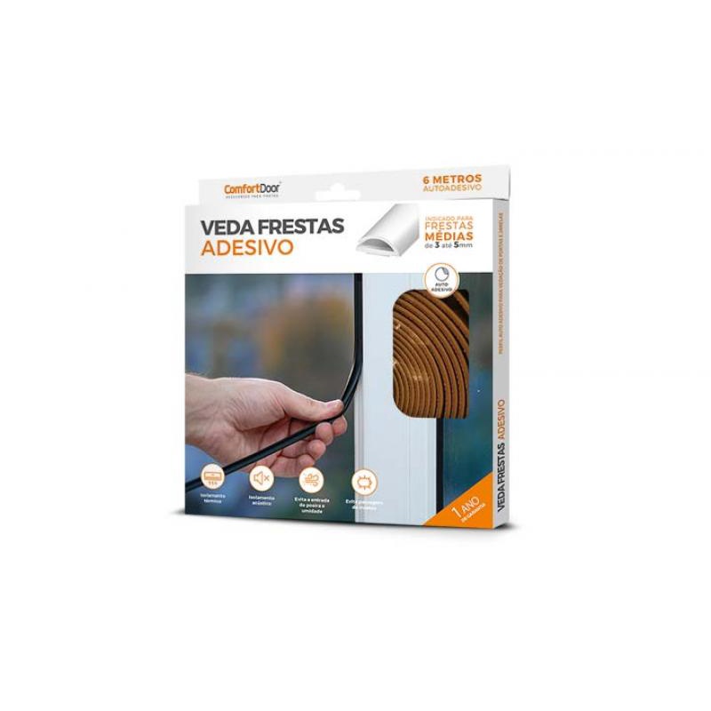 O Veda Frestas Adesivo é um perfil de PVC flexível auto adesivo, projetado para realizar vedações de frestas em batentes de portas, janelas, esquadrias, armários, entre outros, com rapidez e praticidade.