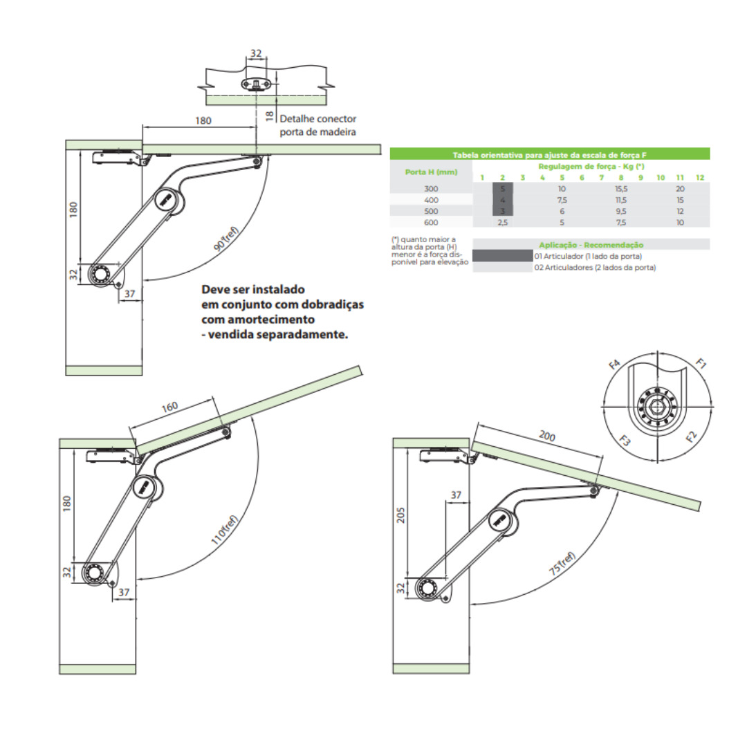 Observações: Pode ser instalado em conjunto com dobradiça e dispositivo amortecedor TN Cruz / Linear, vendidos separadamente.