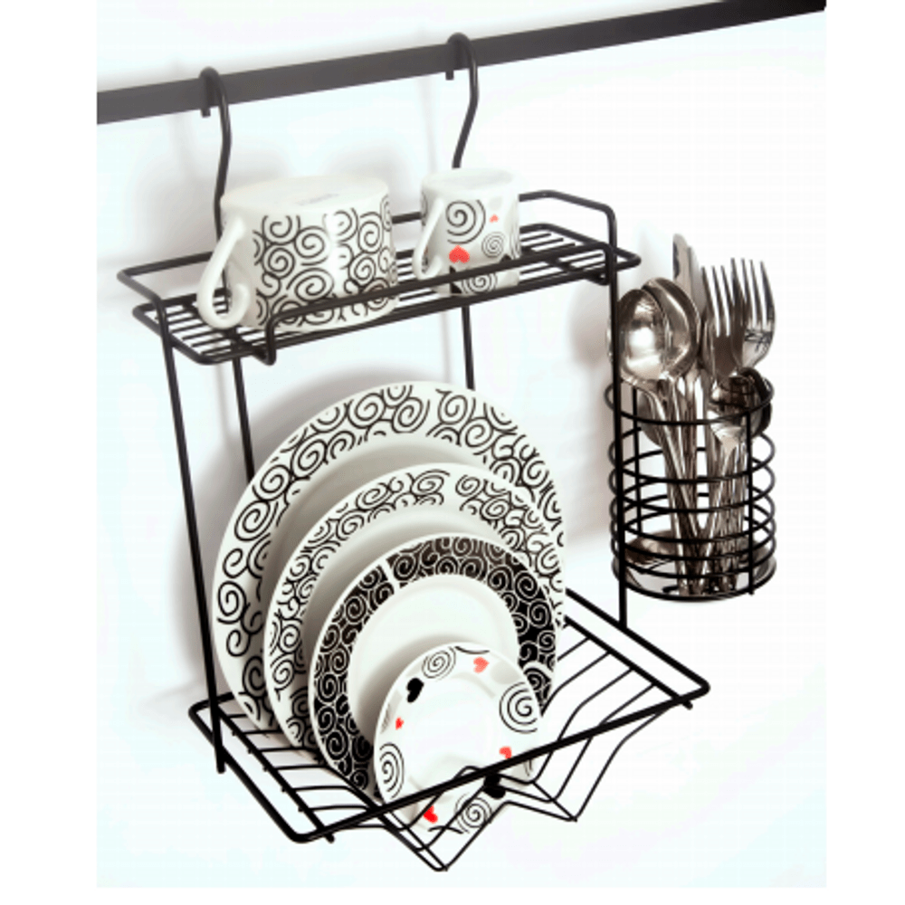 Escorredor Baby Preto 6 Pratos c/Porta Talheres 2450 370x415x165mm