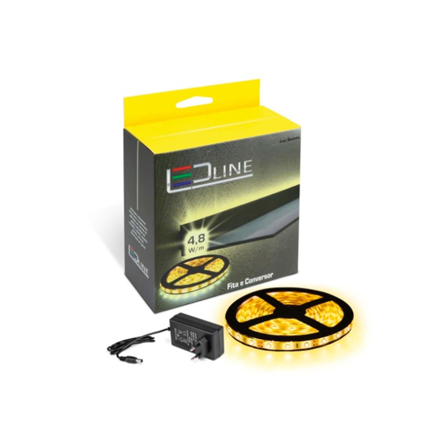 Kit Fita Led 3528 s/Silicone 3000K 120 Leds/m – 5 metros Conversor 12V