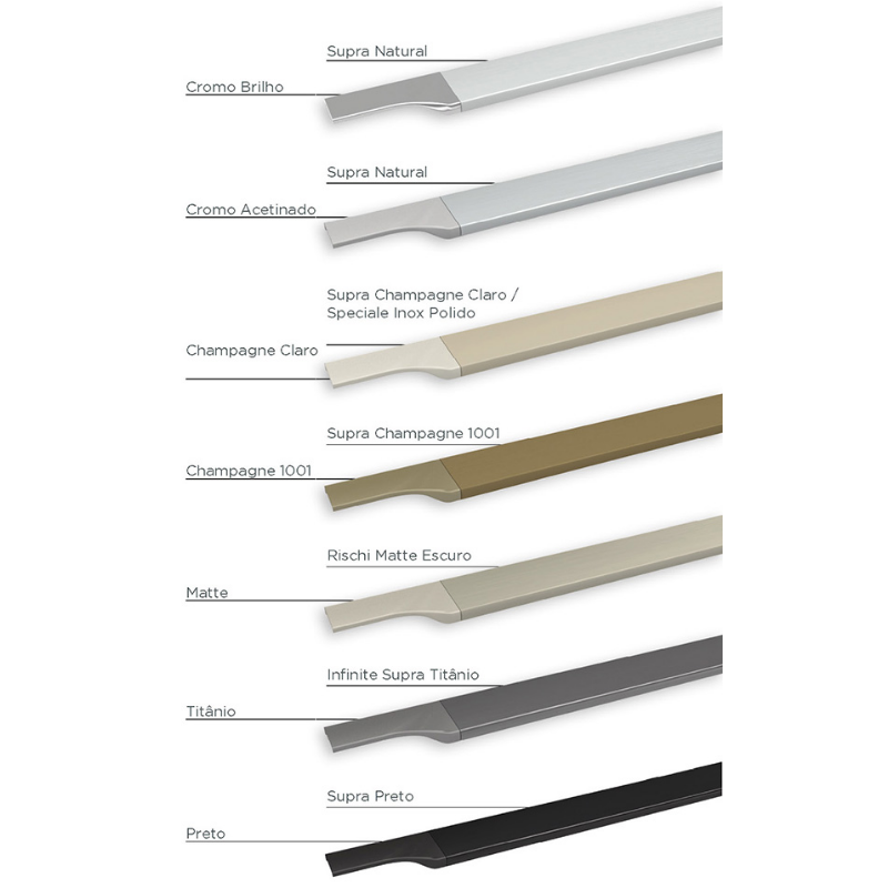 Perfil puxador FACETATO RM-183 Rometal para portas e gavetas de madeira e seus derivados (MDF, MDP, compensado, outros) ou alumínio com espessura de 15 ou 18mm.