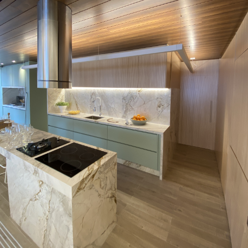 O acabamento RIPADO é versátil e fácil de aplicar, reveste bancadas, paredes e é indicado para ambientes internos.